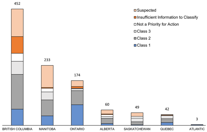 The evaluation team adopted quantitative analysis methodologies to analyze administrative data files from the Integrated Environmental Management System (IEMS), which offered the evaluation team an insight of program status. The IEMS is a database used to track and report information related to contaminated sites, including site condition information and financial information. The IEMS is regularly updated by regional contaminated sites Environmental Specialists. Data was extracted on August 18, 2023. The analysis only considered CSOR site activity, or expenditures, that have occurred between April 1, 2014 to March 31, 2020. The analysis was also limited to sites below the 60th parallel by removing sites in the Yukon and Northwest Territories, and sites funded under the Northern Affairs Program. These sites are not covered under CSOR, but the Northern Contaminated Sites Program. IEMS includes multiple entries per site because entries are created for each new expenditure. Each site may have multiple expenditures from different funding sources, in multiple fiscal years, and in different site actions. Within the sample of 1,013 sites, 2,893Footnote 44 expenditures were made.