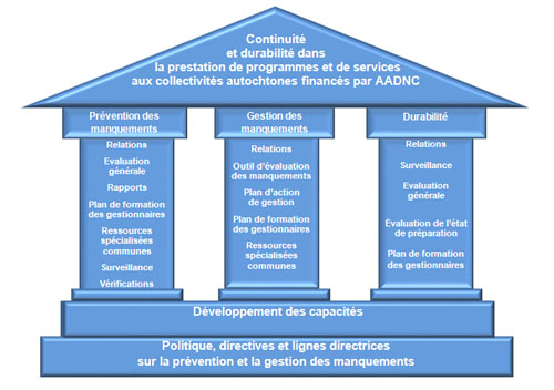 Il incombe au bénéficiaire de prévenir, de relever et de corriger les manquements au moyen d'outils ministériels, d'autres ressources et des processus décrits dans cette directive et la Directive sur la Gestion des ententes de financement par un séquestre-administrateur. AADNC appuie les efforts que déploient les bénéficiaires pour prévenir les manquements, d'abord, et au besoin pour les relever et les corriger rapidement, de manière appropriée et efficiente.