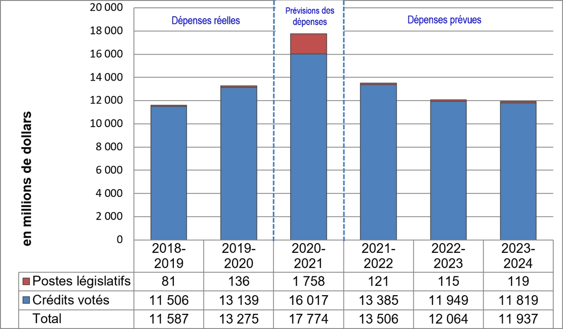 Dépenses approuvées annuellement par le Parlement par une loi de crédits. Le libellé de chaque crédit énonce les conditions selon lesquelles les dépenses peuvent être effectuées.