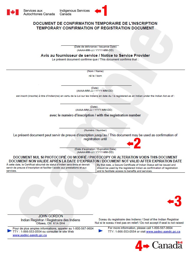 A Temporary Confirmation of Registration Document (TCRD) is an official document issued by Indigenous Services Canada (ISC) that confirms registration under the Indian Act and eligibility to certain benefits, rights, programs and services. Registered persons may request a TCRD in situations where proof of registration is required, for example: