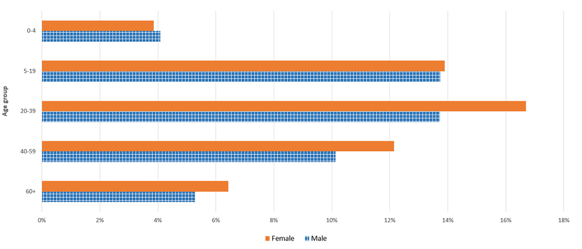 | Age group | 60+ | 40-59 | 20-39 | 5-19 | 0-4 |