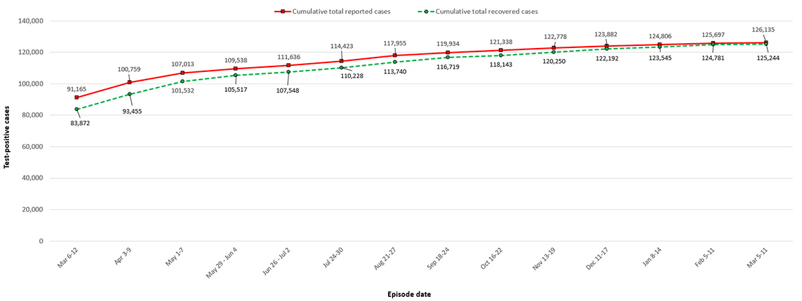 | Date | Cumulative total reported cases | Cumulative total recovered cases |