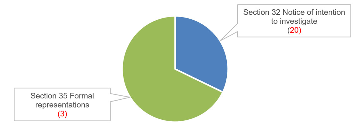 | Section 32 Notice of intention to investigate | Subsection 30(5) Ceased to investigate | Section 35 Formal Representations |