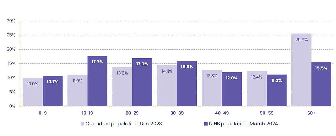 Information contained in the 2023 to 2024 NIHB Annual Report has been extracted from several databases. All tables and charts are footnoted with the appropriate data sources. These data sources are considered to be of very high quality but, as in any administrative data set, some data may be subject to coding errors or other anomalies. For this reason, users of the data should always refer to the most current edition of the NIHB Annual Report. Please note that some table totals may not add due to rounding procedures.