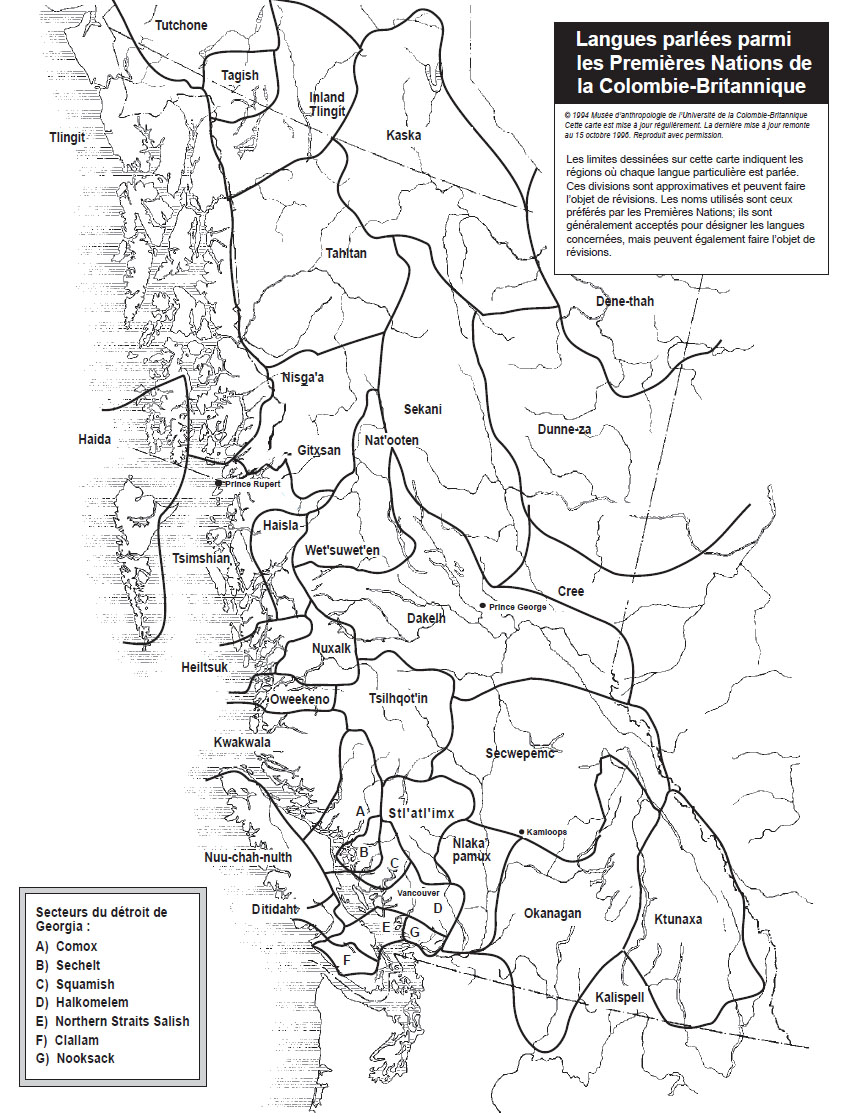 © 1994 Musée d'anthropologie de l'Université de la Colombie-Britannique. Cette carte est mise à jour régulièrement. La dernière mise à jour remonte au 15 octobre 1996. Reproduit avec permission.