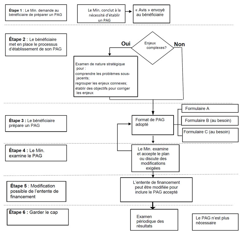 Étape 1 : Le Ministère informe le bénéficiaire qu'il doit préparer un PAG