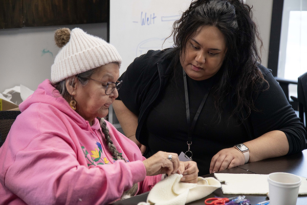 Kenn Aseron : À l'heure actuelle, ils fabriquent des mocassins dans l'autre immeuble. Ils nous enseignent l'histoire des mocassins, la façon dont ils sont fabriqués et les différentes parties qui les composent.