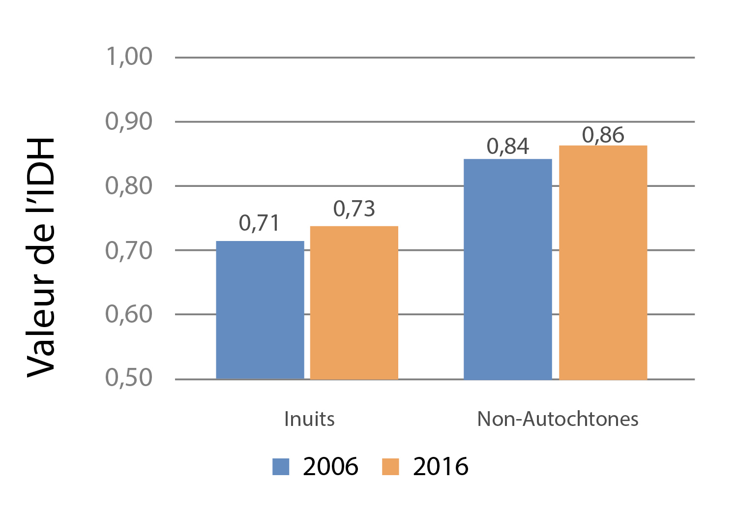 Cette étude confirme les différences qui perdurent entre les Inuit et les Canadiens non autochtones au chapitre de la santé, du revenu et de l’éducation. Les écarts dans les valeurs globales de l’IDH sont demeurés essentiellement stables entre 2006 et 2016.