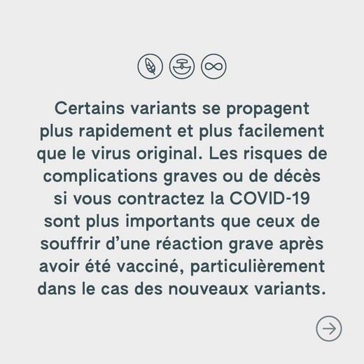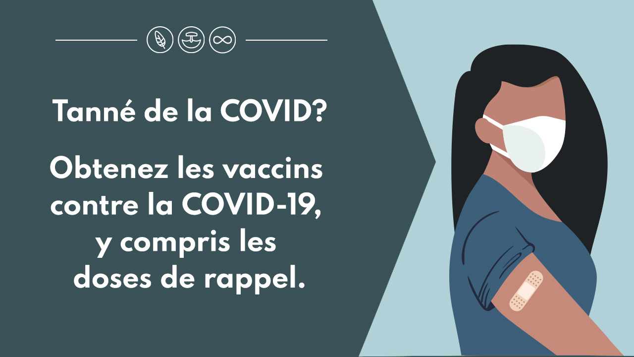 Si vous ne l'avez pas encore fait, faites-vous vacciner et, lorsque vous y êtes admissible, prenez votre dose de rappel. Aidez à arrêter la propagation de la COVID-19, les hospitalisations et les décès.