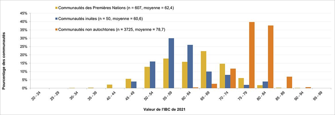 | Valeur de l'IBC de 2021 | Répartition des valeurs de l'IBC par type de communauté | ||