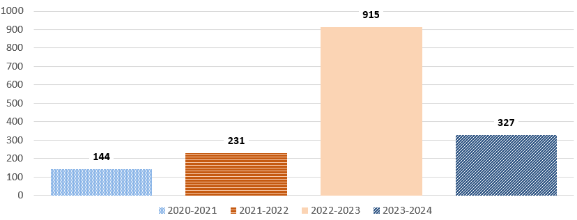 | Nombre de demandes | 2020-2021 | 2021-2022 | 2022-2023 | 2023-2024 |