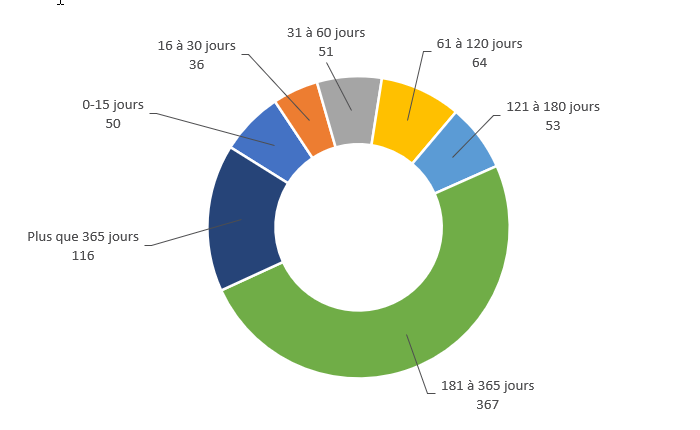 | 181 à 365 jours | 8 | 15 | 23 |